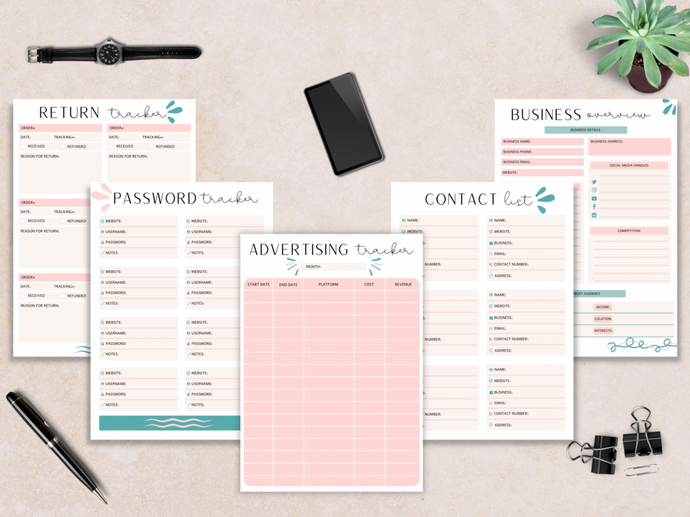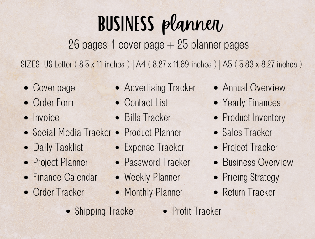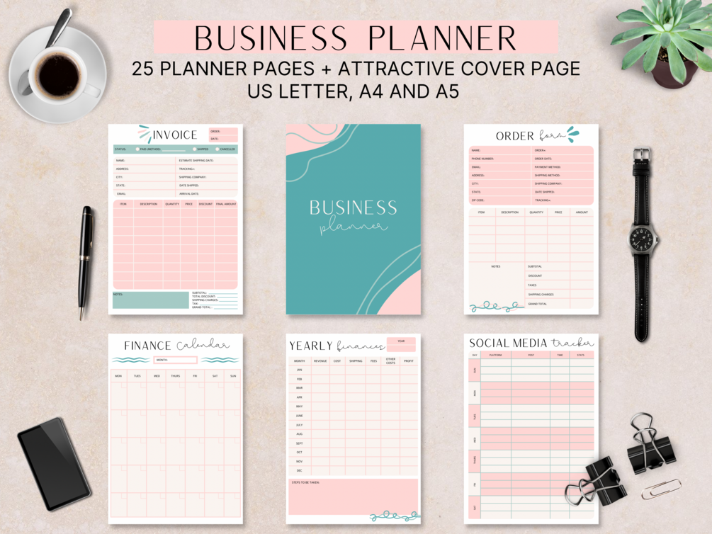 Business Planner: 26 Pages: 1 Cover page + 25 Planner Pages. Available In Printable PDF File, 3 Different Sizes.